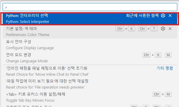 - 인터프리터 지정: 'Ctrl + Shift + P'를 눌러 'Python: Select Interpreter'를 실행하고 설치한 파이썬 경로를 선택한다.